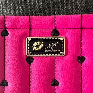 Bold pink wristlet with black heart details. Perfect for essentials. Stylish and fun design. Perfect condition.