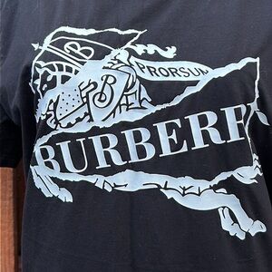 This Burberry black tee showcases a striking design with its bold branding, perfect for elevating your casual style. The short sleeves and minimalist aesthetic make it a versatile addition to any wardrobe, offering both comfort and sophistication.