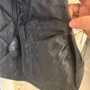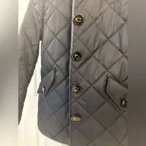 Quilted design with button closure. Features front pockets. Ideal for layering. I Fixed a small rip. Xs small but can fit a small or even a medium. It runs a bit big.