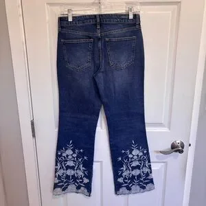Floral embroidery at hem with raw hem detail