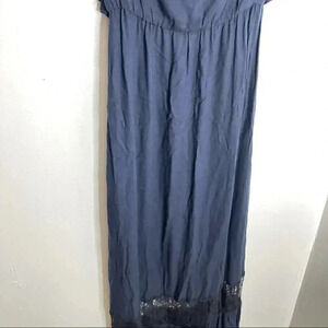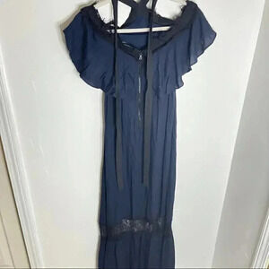 Color & Detail: Navy and black; lace overlay; cottagecore-inspired romance; bohemian maxi silhouette; elastic waist