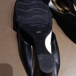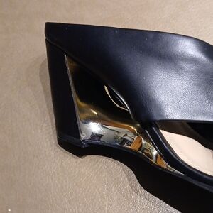 Memory foam, unique cutout heel, silver trim. Vegan faux leather.