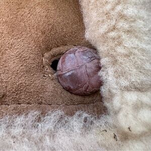 Material: Genuine sheepskin with suede outer & shearling (wool/fur) lining