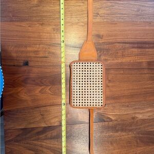 NWOT Woven Rattan Belt Bag with Tan Leather Trim