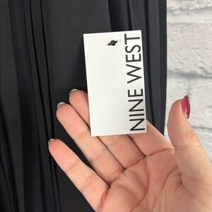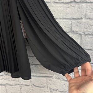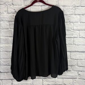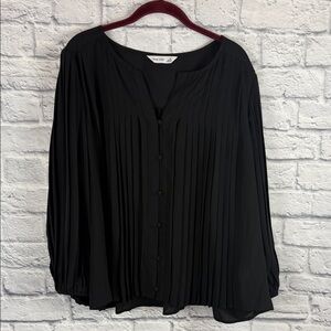 Chic black blouse with pleated design. Button-down front. Perfect for versatile styling.