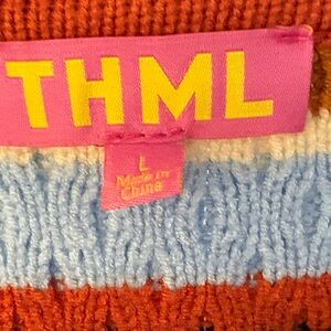THML Women's V-Neck Sweater - Orange, Blue, Red Stripes