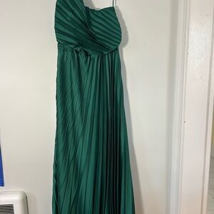 One-shoulder design. ALTERED to fit my 5’1”, 125 lb body. Save yourself the alterations if you’re the same size! The pleats on this are so flattering. Worn one time as bridesmaid. Excellent condition.