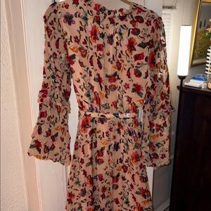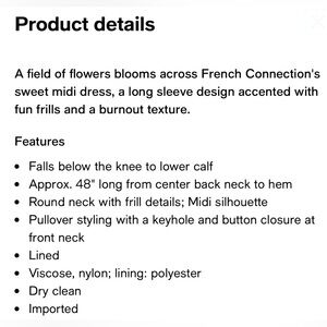 NWT French Connection Avery Long Sleeve Burnout Floral Midi Dress Toasted Almond