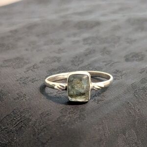 This elegant silver ring features a captivating labordorite stone, perfect for adding a touch of sophistication to any outfit.