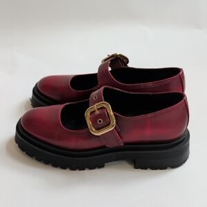 Steve Madden Burgundy Mary Jane Flats with Gold Buckle