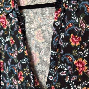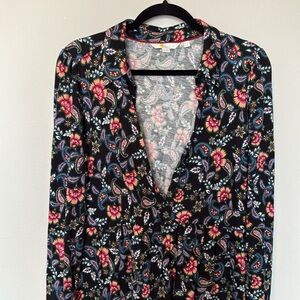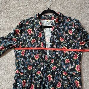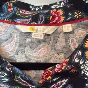 This is the a Black Multicolored Paisley dress by Boden made with 50% cotton, 50% modal, long sleeves, button up. Collared. Women’s size 8. Excellent condition.