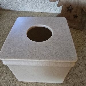 Elegant Beige Sandstone Square tissue box cover. Perfect for any room decor. Resin Heavy Tissue Box Holder for Bathroom Countertop, Tabletop, Bedside Table,Office