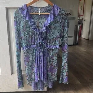 Chic ruffle blouse with a vibrant pattern. Perfect for adding flair to any outfit. Wildest dreams tunic. Sold out online