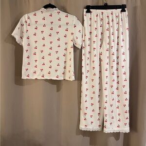 Source Unknown White and Red Cherry Pajama Set
