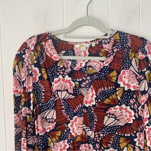 Boden V-Neck Tea Dress Flower Butterfly Petal Stamp Boho Print Dress US 12