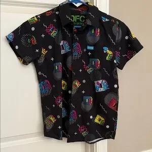 Stand out with the Black Graphic Shirt. Featuring vibrant multicolor designs on a black background, this shirt is perfect for casual outings. Enjoy comfort and style with 's unique patterns.