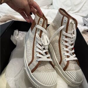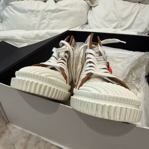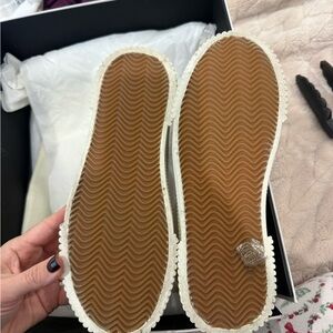 Worn once (barely) has scuffs on the front that can easily be cleaned. With box