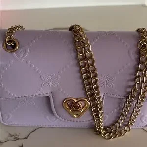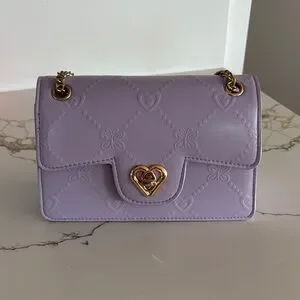 Chic lavender quilted bag with a stylish heart detail. Perfect for adding a touch of elegance to any outfit. Excellent condition
