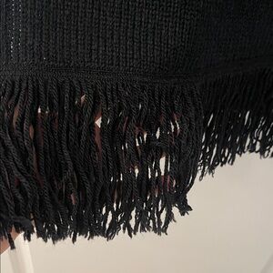 Chic black sweater vest with stylish fringe detailing. Perfect for layering and adding a touch of elegance to any outfit.