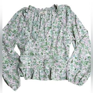 Entro Pastel Green Pink Floral Long Sleeve Ruffle Blouse Size M