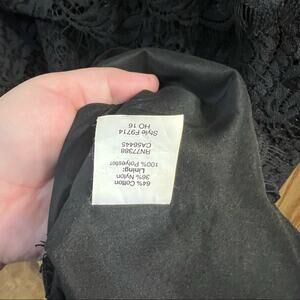 Madewell Black Lace Off the Shoulder Mini Dress in women’s Size 0. Lined. Dress is in very good used condition with no flaws or stains and minimal wash wear. Scalloped edge lace. Cotton & nylon blend. Great for: wedding guest, girls night out, date night, party dress, etc. Please see close-up pictures for condition details. Pit to pit measures approx 15.75 in across, waist approx 17.5 in across, hips approx 19, length from top of front shoulder strap to bottom hem measures approx 34 in. Straps are adjustable; measurement taken at current adjustment.