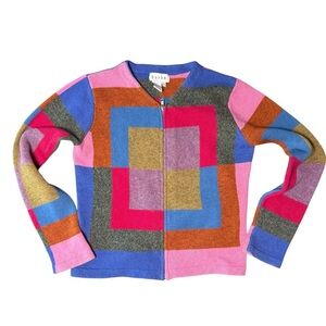 Sorbe Lambswool Colorful Zip Sweater Cardigan. small.