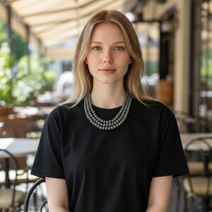 This elegant gray beaded necklace adds a touch of sophistication to any outfit. Perfect for any occasion.