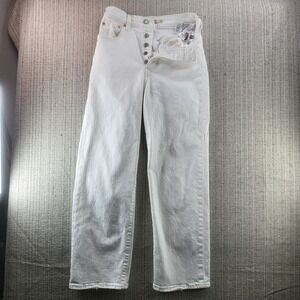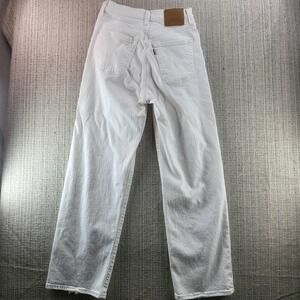 Levis Premium Ribcage Straight Jeans Womens 25 White High Rise Button Fly Denim