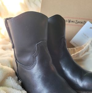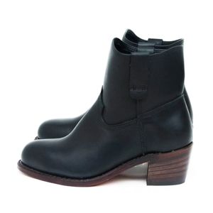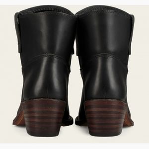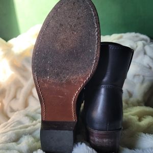 Sleek black leather ankle boots. Durable construction. Classic design with a sturdy heel.