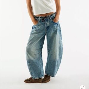 Relaxed fit boyfriend jeans. Light blue wash. Casual and trendy style. Color is ultra light beam sold out