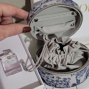This elegant Dior Around the World jewelry travel case is perfect for any trip you take or to store small jewelryitems at home. Featuring a chic blue and white design.