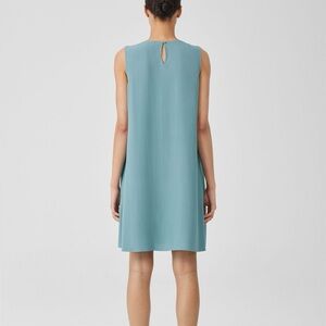 Eileen Fisher Silk Georgette Crepe Round Neck Dress Teal SP