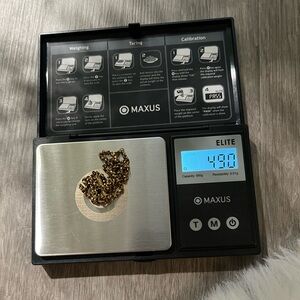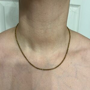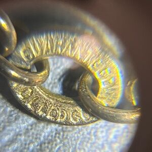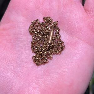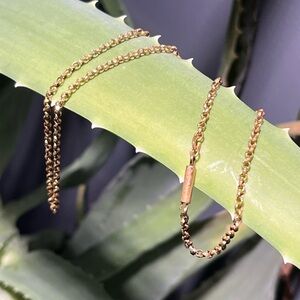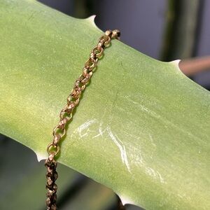 A beautiful Rolo link chain, marked ‘Guaranteed Rolled Gold’. No markings as to carat, but I would guess 9k to 14k based on tone.