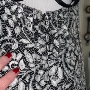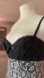 This elegant white and black lace chemise style dress offers a sophisticated and comfortable fit.