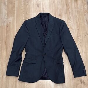 Stylish navy blazer by Topman. Ideal for formal events. Sharp and modern design.