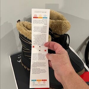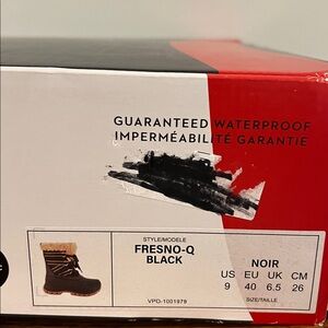 Cozy and durable winter boots. Black exterior with tan lining. Ideal for cold weather.