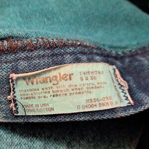 Vintage 1980s Wrangler High-Waisted Teal Acid-Wash Denim Jeans .Size 5x36 approximately