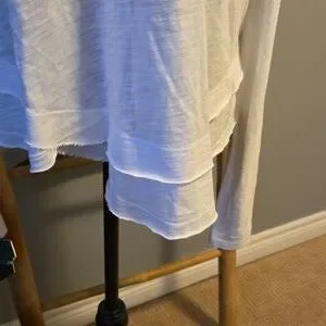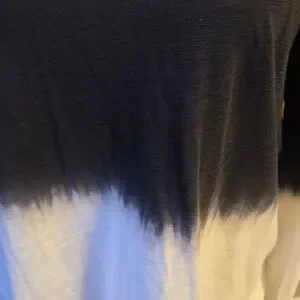 Pima cotton/modal - slub Jersey, smooth buttery feel. Gradient white to deep blue. Signature mock layer detail at hem.
