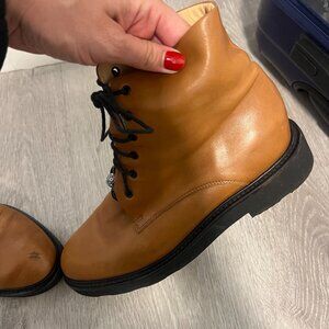 A firm every day favourite, our tan combat boots are perfect for long city days - rain, hail or shine. Hand-crafted in supple leather and cotton laces, with a strong, grounding and lightweight rubber sole, they epitomise every day comfort and ease. Wear them to punctuate a relaxed and pared back ensemble.