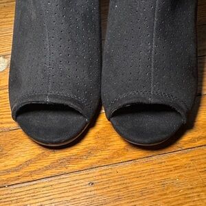 Old Navy Black Suede Peep Toe Ankle Booties Side Zip Chunky Heel Size 8
