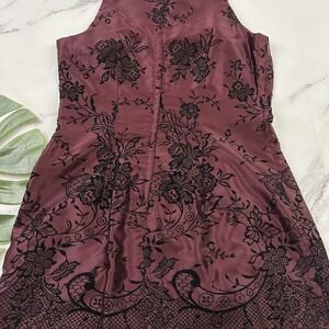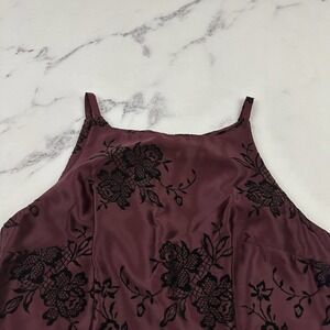 XOXO Womens Vintage Y2k Mini Dress Size 11 Burgundy Black Flocked Lace Print