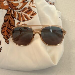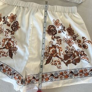 Super cute and easy to wear shorts and top set. Never worn just sat in friend’s closet. The floral color is off a bit , they are lighter. See pictures for more details. Sunglasses included to complete the look.