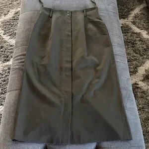 Stunning Vintage Dana Brooke Button Front Gazette Skirt. Button front opening, waisted loops for belt. It’s a beauty! Fully lined. In excellent condition! Military green color.