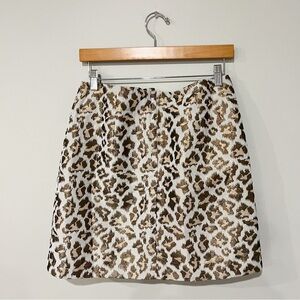 Chic mini skirt with a bold metallic gold leopard pattern. Perfect for adding flair to your outfit. No flaws. Women’s size 4.