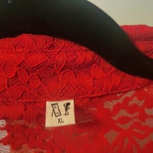 Elegant red lace blouse with button-up front. Perfect for layering. Slightly Cropped