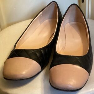 New but no box. These black and tan quilted flats by St. John are a perfect blend of style and comfort.