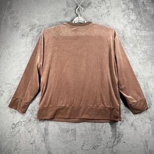 Athleta Sweatshirt Retroplush Velvet Medium Brown Snaps Athleisure Luxe Cozy