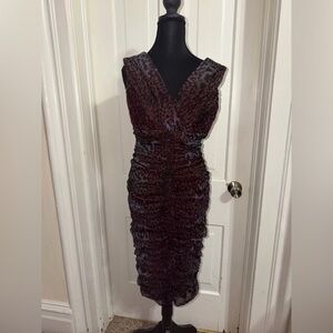 Women’s size 12 Tadashi Shoji Purple Ruched Midi Dress
