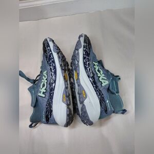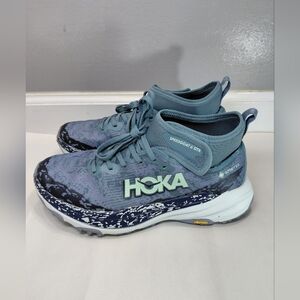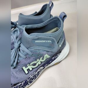 HOKA Speedgoat 6 gtx women size 9B good condition trail running shoes in blue and gray. Comfortable and stylish for outdoor adventures.