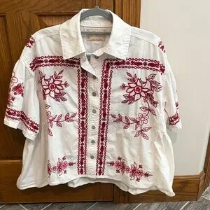 We The Free Spring Refresh Vacation Shirt, Embroidered, Small, Boho Cottage